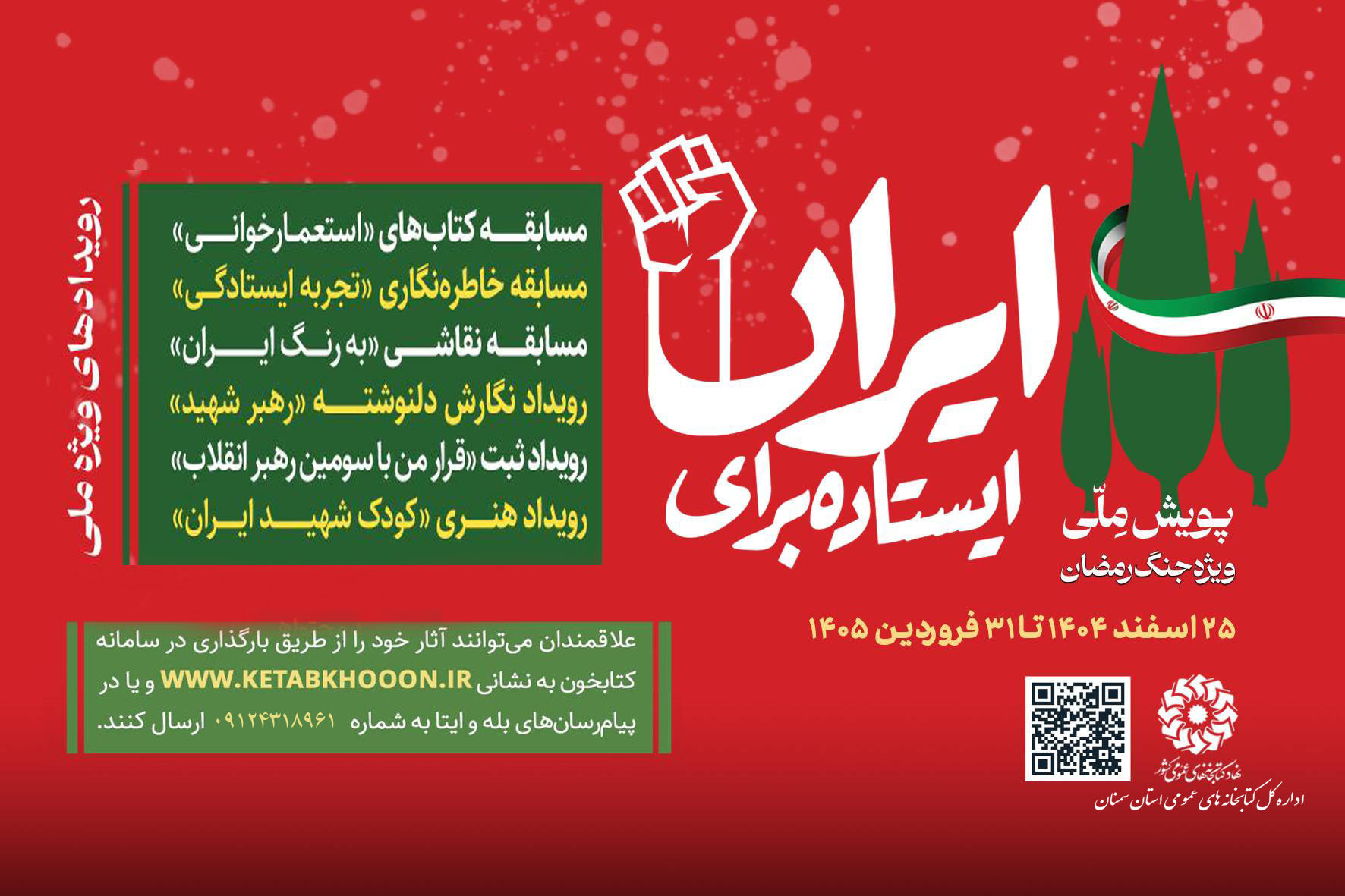 اداره کل کتابخانه های عمومی استان دومین دوره پویش "ایستاده برای ایران" را ویژه جنگ رمضان برگزار می کند.