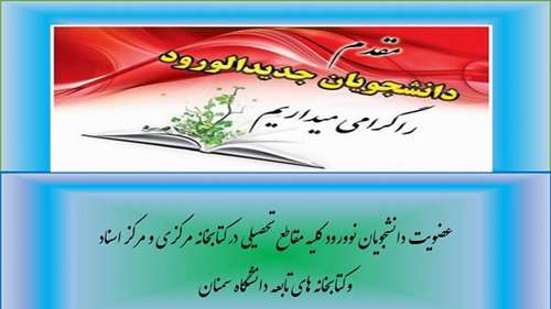 دانشجویان نوورود مقاطع مختلف تحصیلی(دکتری، کارشناسی ارشد، کارشناسی و کاردانی) از این پس می توانند از کلیه خدمات کتابخانه مرکزی و مرکز اسناد و کتابخانه های تابعه دانشگاه استفاده نمایند.
