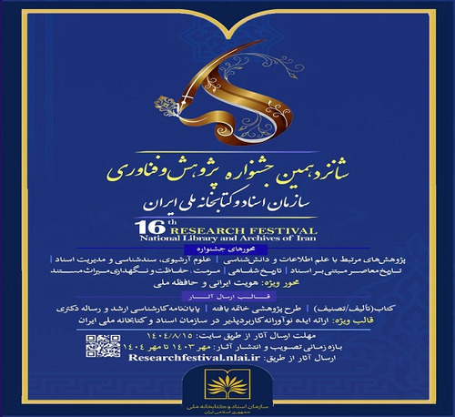 فراخوان ارسال آثار به شانزدهمین جشنواره ملی پژوهش و فناوری سازمان اسناد و کتابخانه ملی ایران